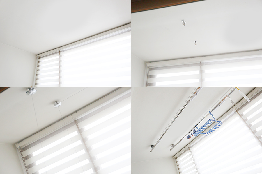 명절 전에 빨래너르미 설치하고 한결 편해졌답니다. 빨래는 넉넉하게 널어 말리고 사용하지 않을때는 천장 위로 싹 올려 너무 깔끔해요!