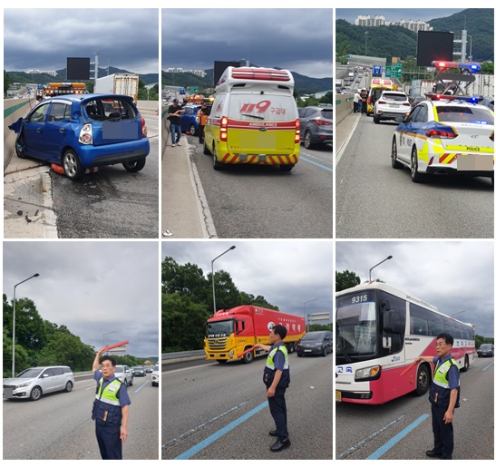- 2차 사고 방지를 위해 차량 유도 후 112, 119, 렉카 차량 도착 확인