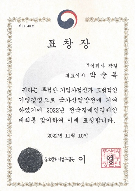 중소벤처기업부장관 제17회 전국장애인경제인대회 장관상 수상 페이지 정보 작성자 최고관리자 작성일22-11-11 14:22 조회23,890회 댓글0건 관련링크 본문 중소벤처기업부장관 제17회 전국장애인경제인대회 장관상 수상 댓글목록 등록된 댓글이 없습니다. 이전글 다음글 목록
