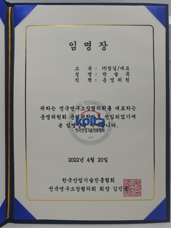전국연구소장협의회 운영위원회 운영위원 임명 페이지 정보 작성자 최고관리자 작성일22-04-27 13:55 조회27,503회 댓글0건 관련링크 본문 (주)참길 대표님께서 전국연구소장협의회 운영위원회 운영위원으로 임명되셨습니다. 댓글목록 등록된 댓글이 없습니다. 이전글 다음글 목록