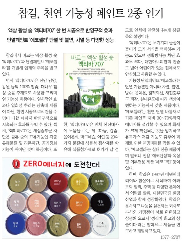 참길, 천연 기능성 페인트 2종 인기 (장식신문 제422호) 페이지 정보 작성자 최고관리자 작성일21-06-30 16:06 조회34,027회 댓글0건 관련링크 본문 참길, 천연 기능성 페인트 2종 인기 (장식신문 제422호에 게재된 내용입니다.) 댓글목록 등록된 댓글이 없습니다. 이전글 다음글 목록
