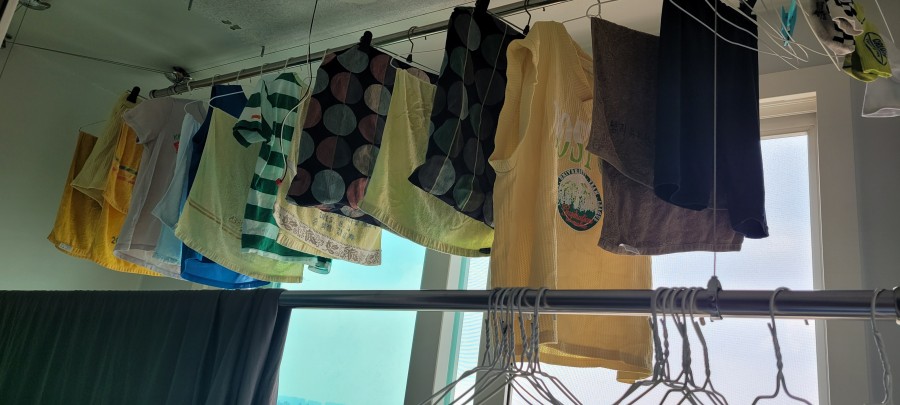 우선 건조대 두개 높이를 다르게 할 수 있다는것 다양한 악세사리로 좁은 공간이지만 다섯식구 빨래를 모두 다 널수 있어 베란다 바닥을 자유롭게 쓸 수 있는 점ᆢ