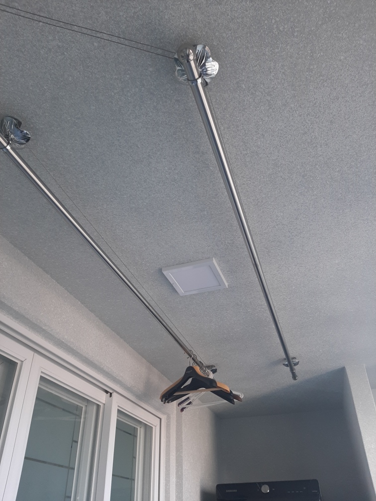 베란다 천정형 건조대는 일반적으로 네모난 형태가 대부분이었는데, 잦은 고장과 공간활용성이 떨어져서 마음에 들지 않더군요.
