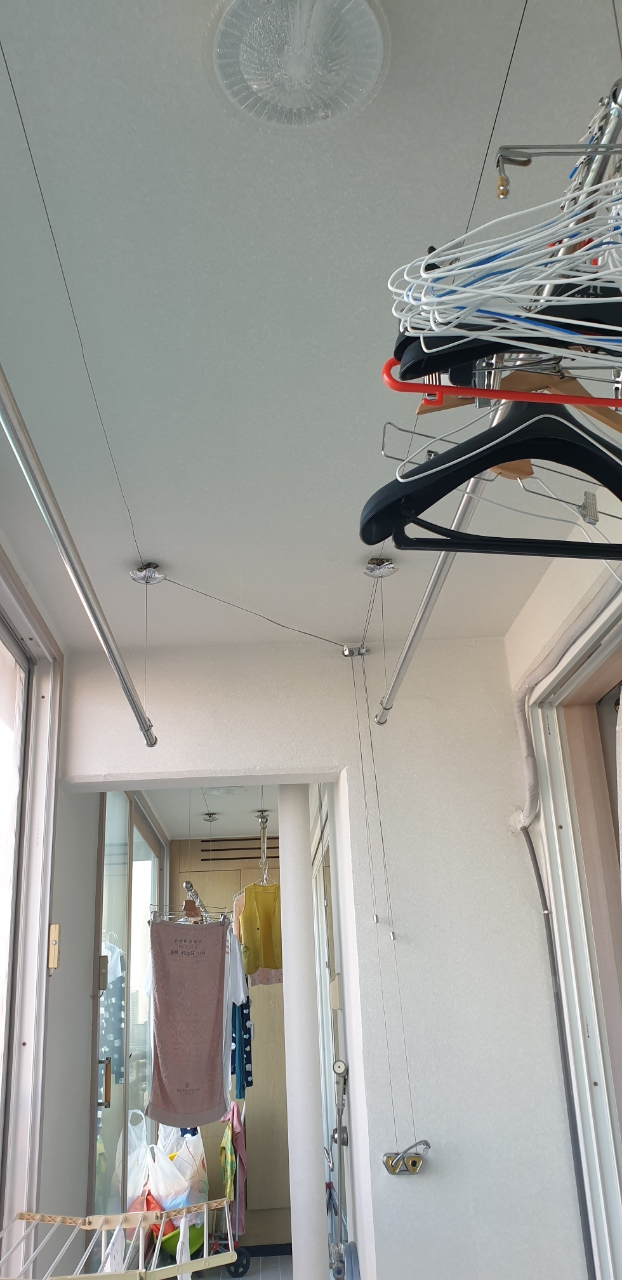 설치해주신 기사님 말씀에 의하면 50KG까지 버티는 와이어라고 하니, 그정도까진 아니더라도 실제 빨래건조시에는 불안하지 않을 것 같습니다.