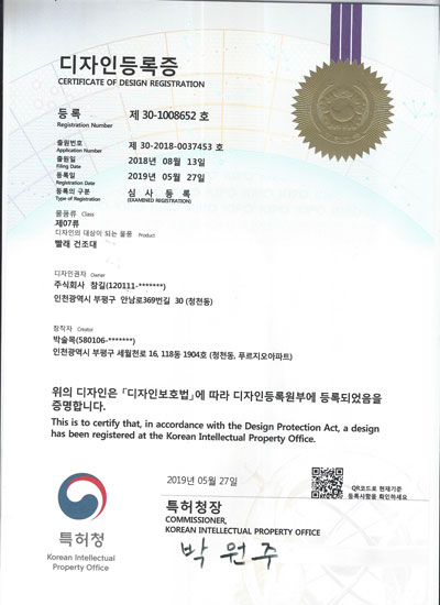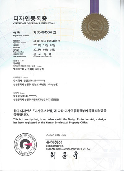 [디자인등록증] 빨래건조대용 와이어 권취장치